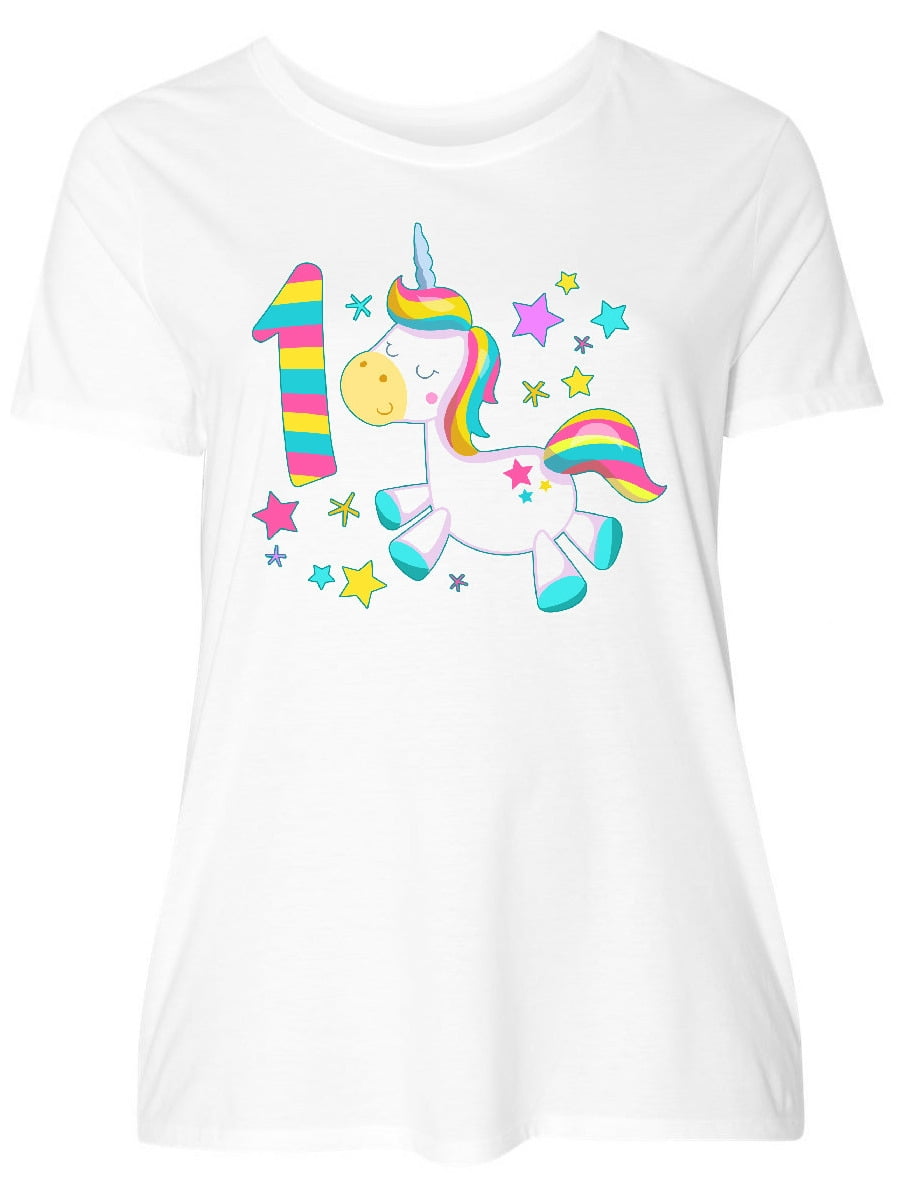Inktastic First Birthday Rainbow Unicorn Plush And Stars Adult Women S Plus Size T Shirt Female White 1x Walmart Com